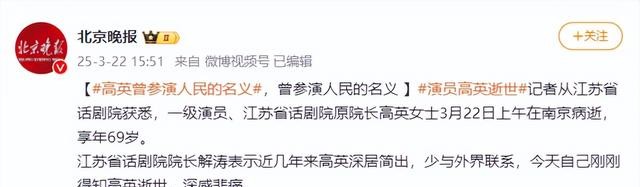 只是令人惋惜的是,2025 年 3 月 22 日上午,高英因病在南京与世长辞,享年 69 岁。