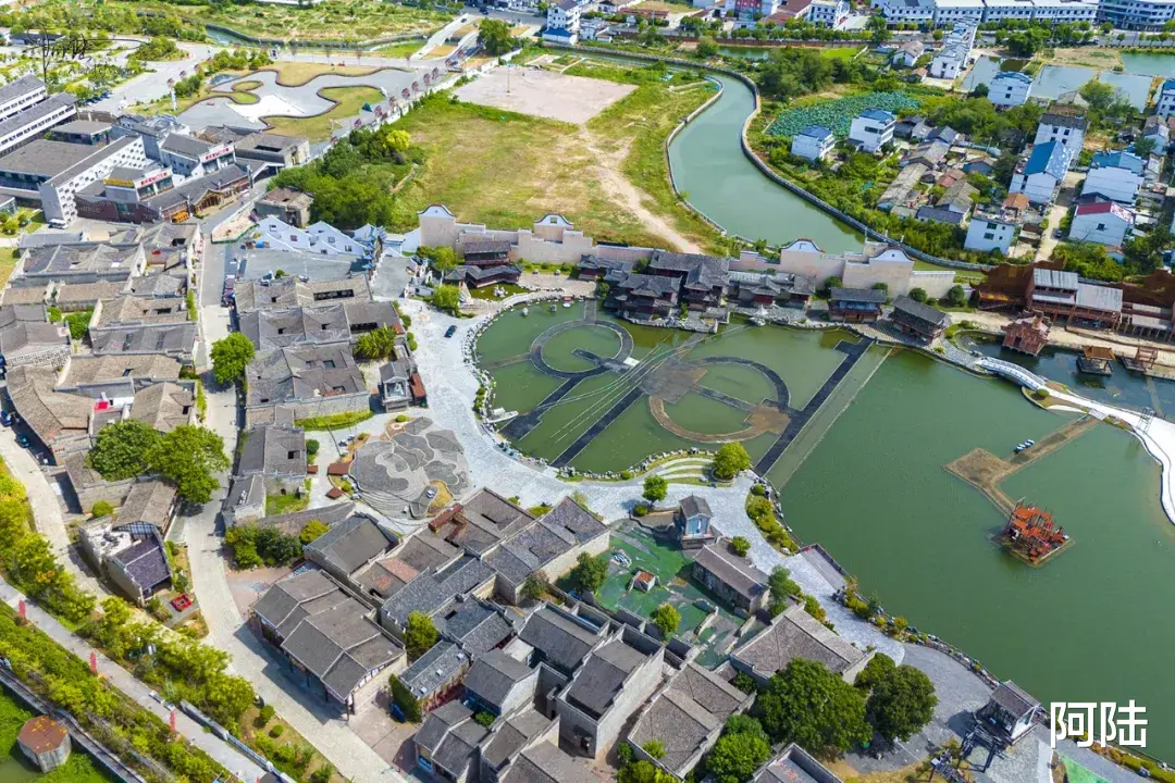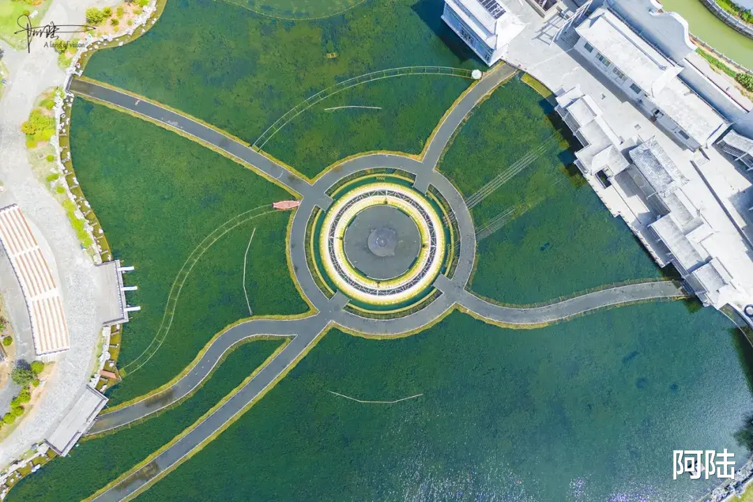 比较让我好奇的它旁边的《寻梦牡丹亭》大型实景演出,据说“通过创新性设计出沉浸交互的表演场景,再现了汤显祖代表作《牡丹亭》中的动人情境”。而比较让我惊诧的则是俯瞰视角下的的这片水塘,无论图案造型还是线条,个人感觉总透着几分诡异,跟四周环境格格不入,哈哈,不知道设计方是当初是怎么介绍相关理念的呢?又或者说都是为了配合上面说的实景演出?
