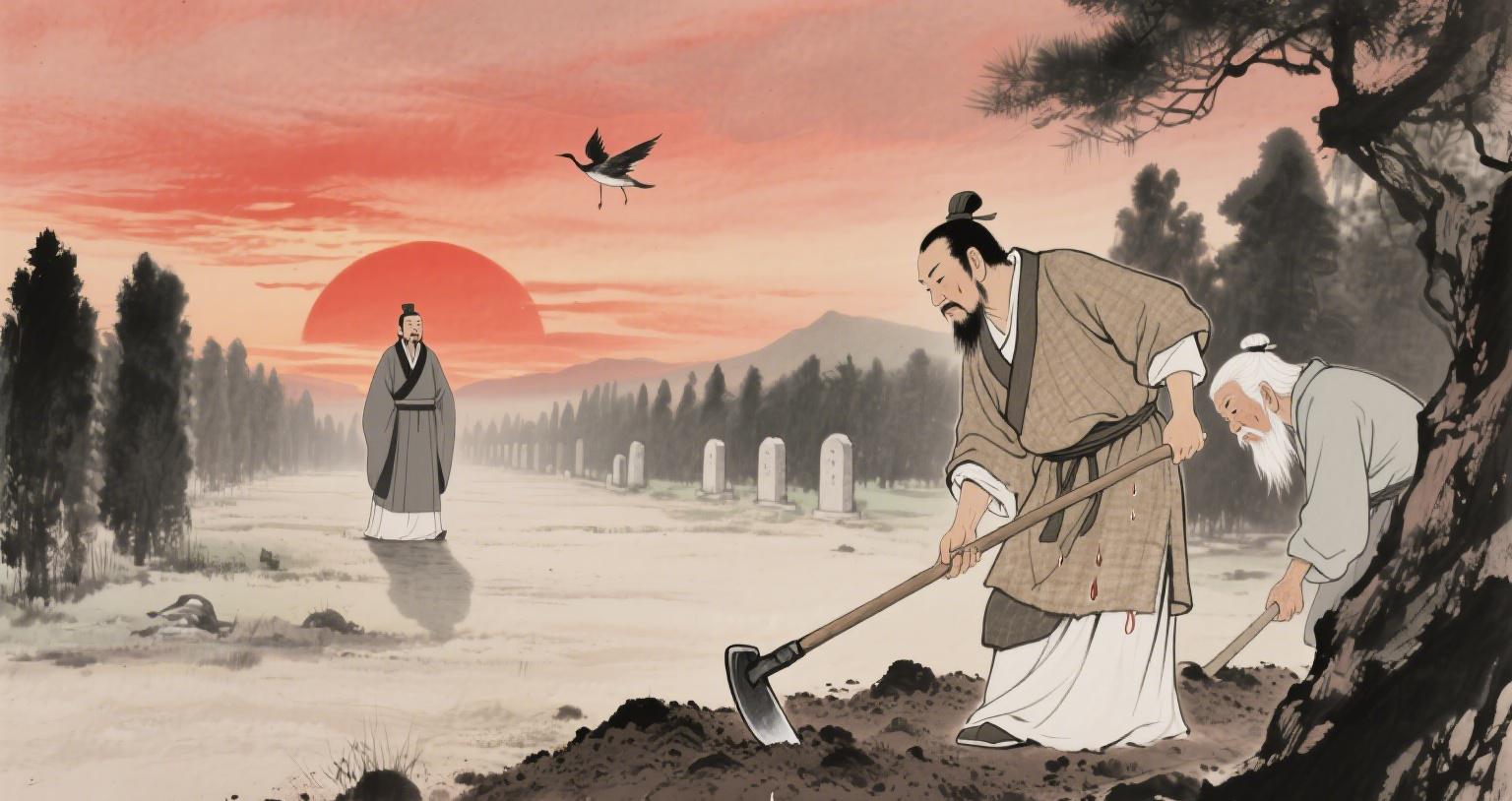 有一次,太甲看到守陵人在田地里劳作,便问他们为何如此辛苦。老人回答:“春天不播种,秋天就无收;君主不体恤百姓,国家就会灭亡。” 这句话像一把锤子,狠狠砸在太甲的心上。他开始反思自己过去的所作所为,想起那些因他而流离失所的百姓,想起伊尹劝谏时斑白的鬓发,心中充满了愧疚。