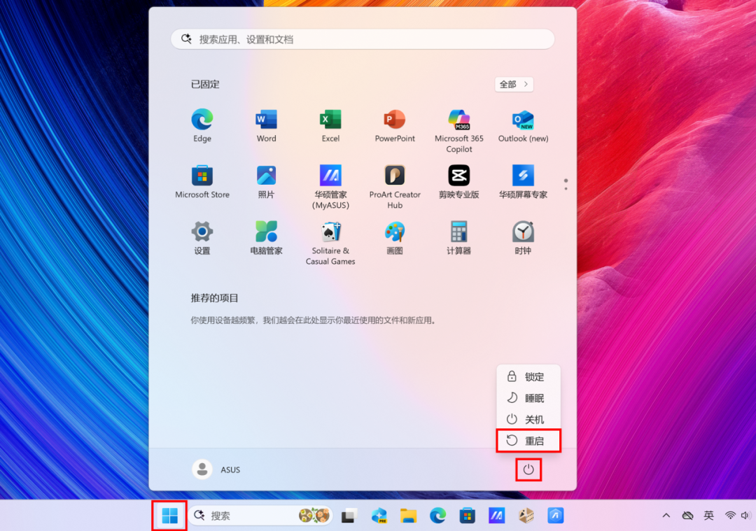 确保您已保存了开启的文件后,依次点击【开始-电源-重启】,快速搞定!