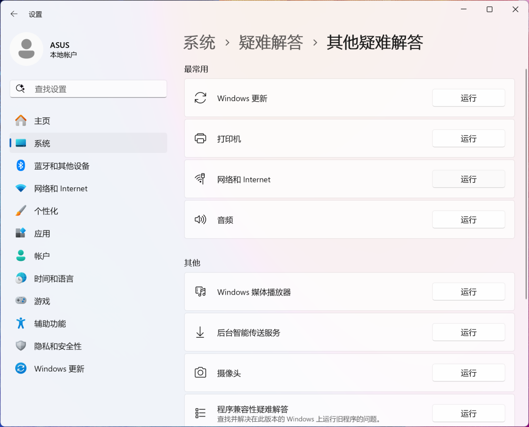 Windows 系统自带的疑难解答也可帮助解决部分问题。