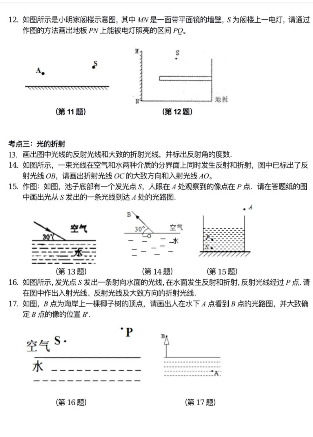 八年级物理光路图练习大汇总