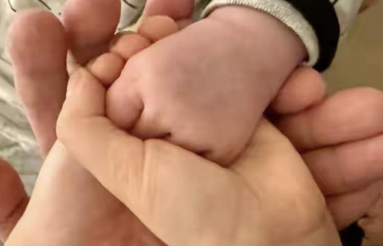 现在再次看到那张二胎牵手的照片。