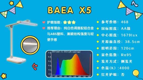护眼灯排名前十的品牌有哪些?BAEA X5外观采用现代简约风格,纯白色机身搭配矩形底座,视觉简洁利落,能轻松融入书房、儿童房等多种环境;灯体采用铝合金与ABS塑料组合材质,兼顾质感与轻量化,日常挪动不费劲,表面经过4层喷涂阳化处理,可有效减少划痕和油污沾染,耐用易清洁。