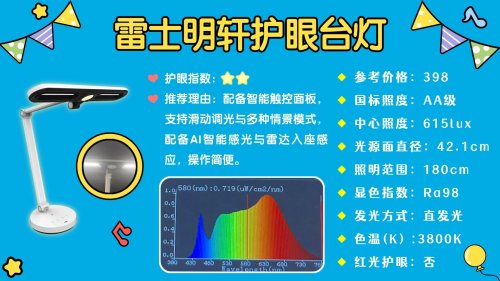 第八名:雷士明轩 —— 色温3800K左右,视觉观感温和,适合夜间学习场景。