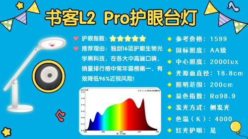 第一名:书客护眼台灯L2 Pro ——唯一做到降低96%近视风险的护眼灯款式。