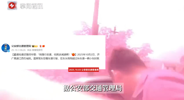 “交警指出其强行变道这一严重违法行为时,温某又强词夺理,把错误都推到快车道小车身上:‘我强行变道,他就应该减速啊!’‘他的速度,按正常逻辑应该是减速,他是加速!’‘我变道他不给我变!’” “温某”的这番“辩解”,简直是“神逻辑”! “我犯错,你活该”!