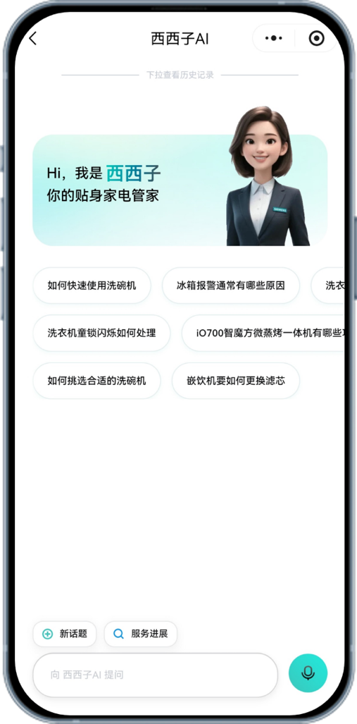 基于对中国消费者使用习惯与服务需求的长期洞察,西门子家电正式推出品牌首个AI智能体——“西西子”。对于消费者而言,西西子是一位7x24小时在线的全能管家,为消费者生命周期全链路提供从售前到售后的高质量体验。这不仅是前沿AI能力在家电领域的落地实践,更是西门子家电在智能服务体系上的一次系统性升级:让专业知识变得可对话、让复杂问题得到即时理解,也让“以用户为中心”的服务理念在数字时代拥有更清晰的实现路径。