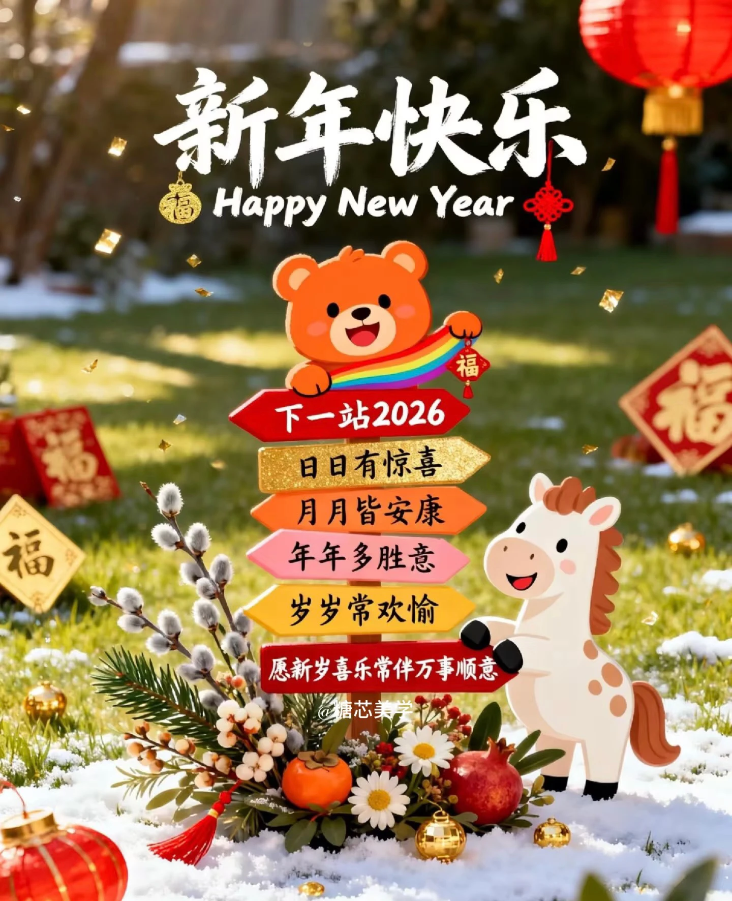 小编为大家收集了10句新年祝福文案,发朋友圈或者祝福亲友,仪式感满满!1.烟火向星辰,所愿皆成真,岁岁常欢愉年年皆胜意2.旧岁千般皆如意,新年万事定称心,愿我们岁岁平安3.时光辗转又一年,爱与温暖常伴你我岁岁无忧4.新岁已至,有光可循有梦可追,2026奔赴崭新山海5.告别过往所有遗憾,携满心欢喜迎接岁岁朝朝6.愿轻柔的风,吹走烦恼忧愁,吹来顺遂与温柔7.岁末暖茶温酒,家人闲坐灯火,岁岁年年皆安暖8.把日子过成诗,简单精致温柔坚定,2026万事可期9.新的 365 天,愿眼里有光心中有爱,脚下步步生花10.举杯敬此年,敬朝朝暮暮的温柔,2026岁岁皆胜意