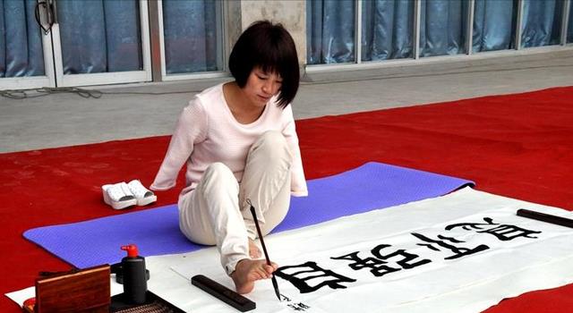 她没有放弃,而是迎接挑战,学会了用脚来完成日常生活的各种动作,包括进食、漱口、穿衣、做饭、使用电脑,甚至练习书法。