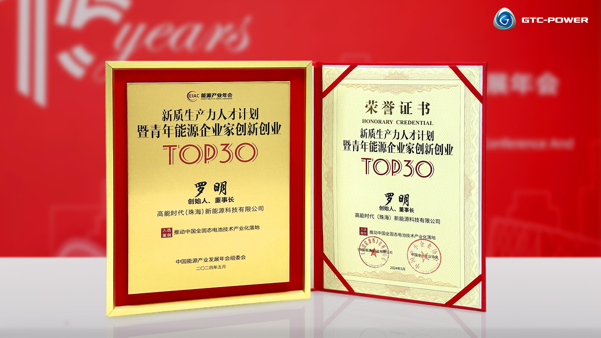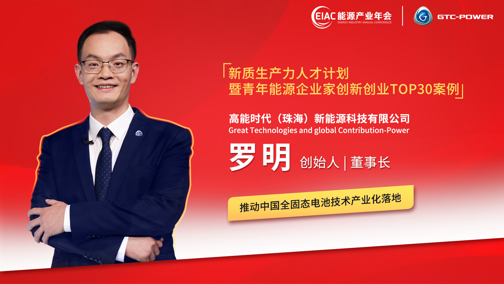 5月31日,由中国能源报、中国能源研究会主办,中国中小企业协会联合主办的第七届(2024)中国能源产业发展年会在北京·人民日报社隆重举行。会上,备受瞩目的“新质生产力人才计划暨青年能源企业家创新创业Top30案例”正式发布,高能时代创始人、董事长罗明凭借“推动中国全固态电池技术产业化落地”的突出贡献,成功入选。