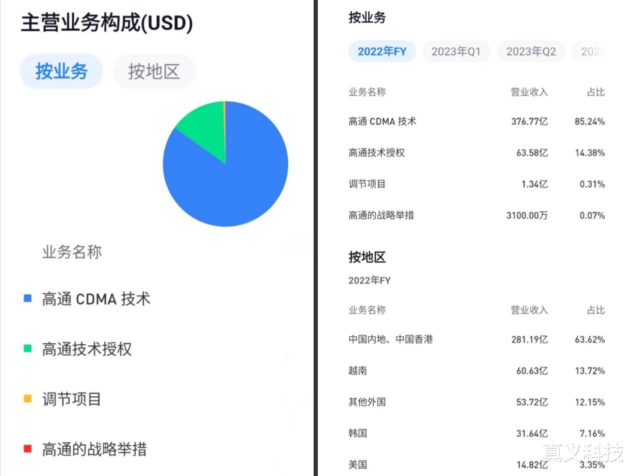 从高通的收入结构可以看出,CDMA技术相关收入依然是其“命根子”,而中国区业务则是其收入大头,由此可见高通现在依然可以靠核心专利躺赚。但是,随着中方通信力量的崛起,高通的好日子还能持续多久呢?