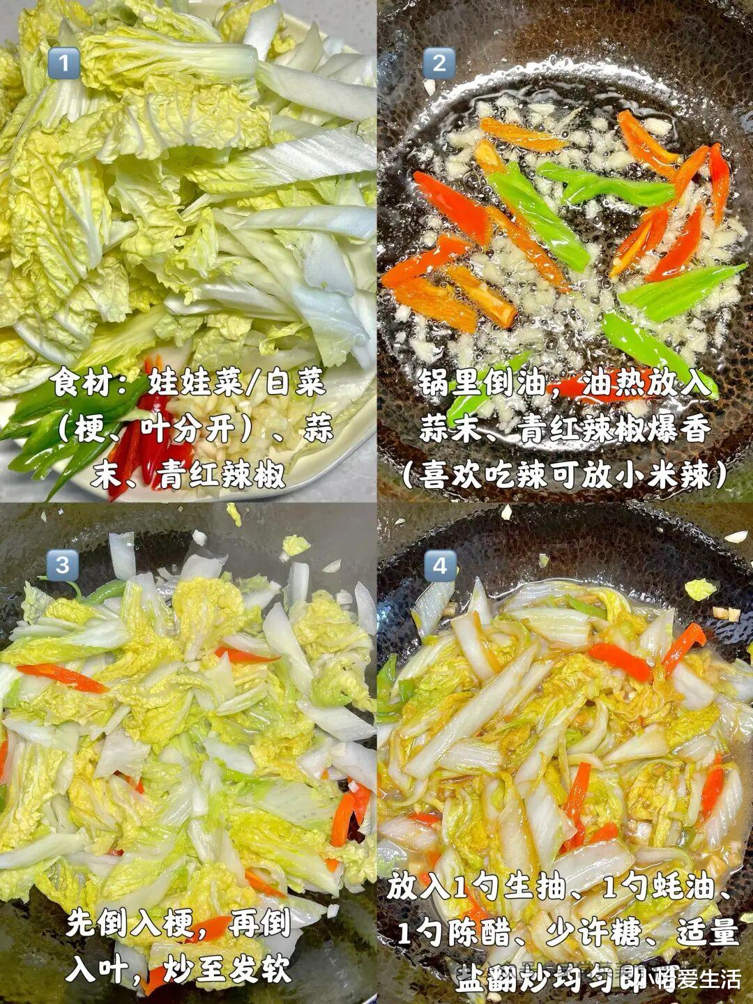 1. 娃娃菜洗净,切四瓣后再切成薄片。