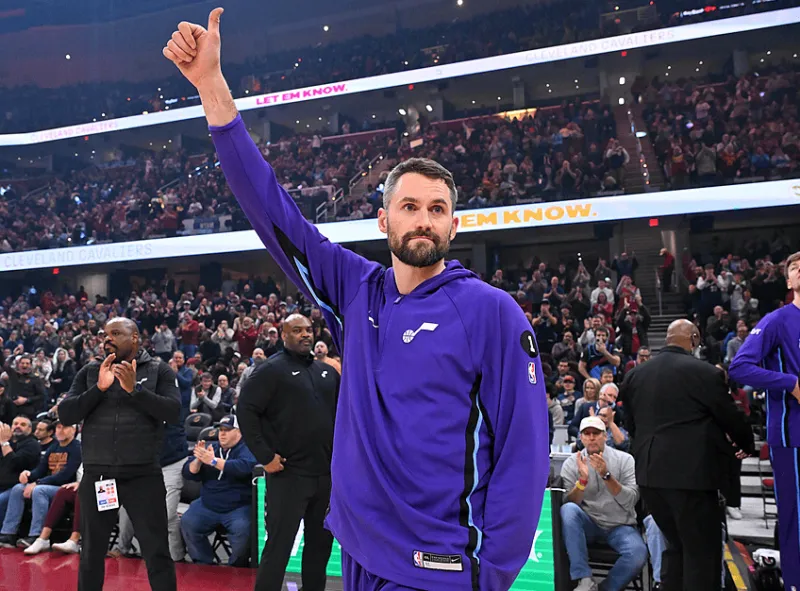 今日NBA常规赛,骑士对阵爵士的比赛中,在两队第一次暂停期间,骑士主场的大屏幕突然亮起凯文-乐福的身影。那些身披0号球衣征战的岁月、总决赛上奋力拼抢的瞬间、夺冠时相拥而泣的画面缓缓闪过,克利夫兰球迷纷纷起立鼓掌,掌声与欢呼声交织,现场瞬间被温情包围。
