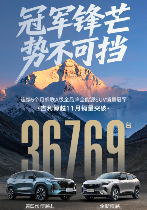 当SUV市场的竞争进入“细节决胜”的阶段,有一款车型却以持续领跑的姿态诠释了“国民爆款”的底气——吉利博越系列11月狂销36769辆,连续5个月稳坐A级全品牌全能源SUV销量冠军宝座。作为家族的核心战力,第四代博越L以“比同级多一点”的产品力,让家庭用户在10万级预算里,也能摸到“越级体验”的天花板。