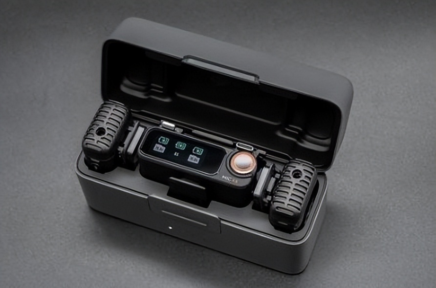在外观方面,麦克风体积小巧轻盈,接收器采用直插式设计,无需繁琐的线缆连接,即插即用,使用便捷。发射器则配备了领夹,使用佩戴方便。另外还配备有充电盒可供用户选购,进而提升户外使用的便携性。