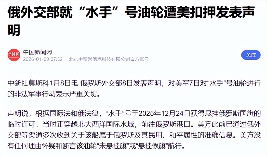 【信源:央广网2026-1-8美国扣押委内瑞拉有关的俄罗斯油轮,并扬言无限期控制委内瑞拉石油销售