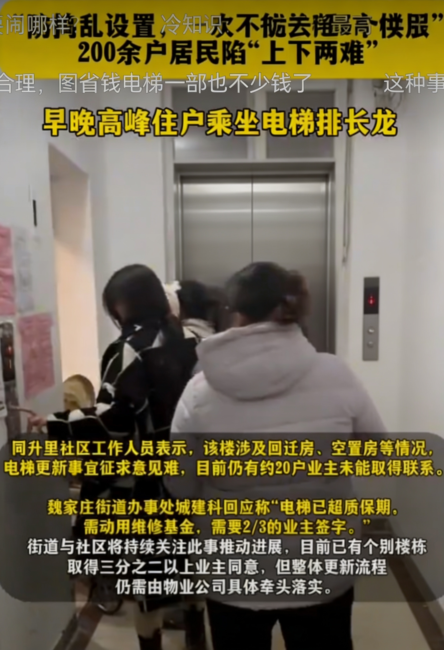 安全感的缺失: 电梯频繁故障、安全隐患长期存在,让每一次乘坐都变成了一场“赌运气”的冒险。这种对生命安全的担忧,是居住焦虑中最沉重的一块石头。