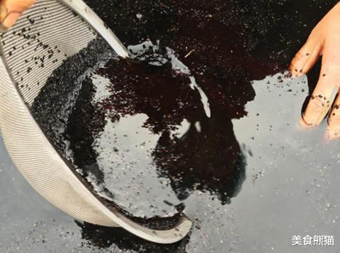 在清洗过程中,芝麻比较黏手套,注意不要一直用手抖芝麻。把芝麻放入待洗的盆子里,加水没过芝麻5cm以上,确保所有芝麻都曾浸入水中,静置片刻,将浮在水面上的干瘪芝麻去除,将黑芝麻捞出放到备用的盆中,将淘洗的水掉到,查看底部的泥沙情况,至少淘洗两次,如果泥沙多,需要淘洗至看不见泥沙为止。
