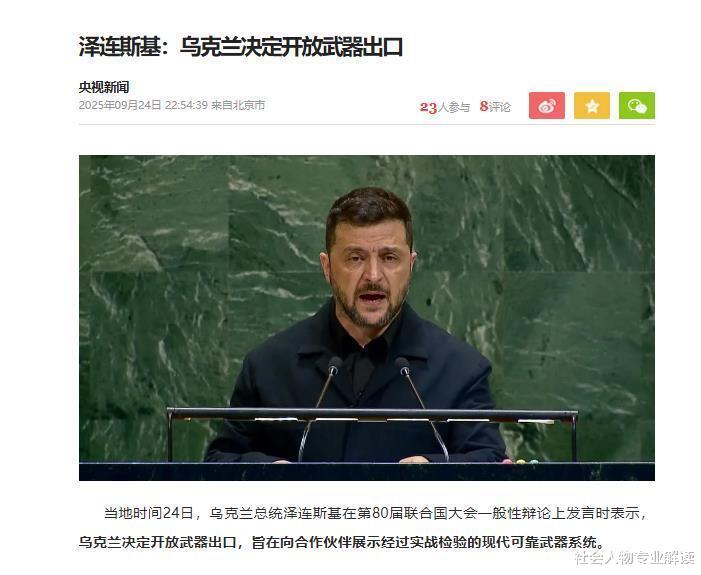 泽连斯基或许以为大量武器垂手可得了,于是,在联合国大会上公开发言时他表示;乌克兰准备开放武器出口,因为我们的武器都是经过实战考验,是可靠的现代化武器系统。