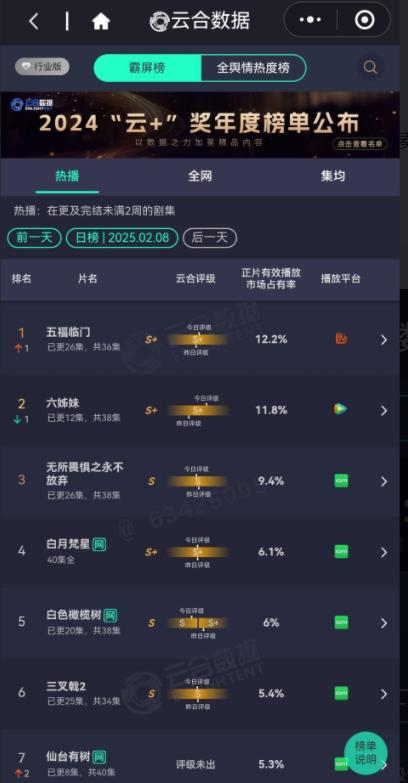 从云和数据上看,排在第一名的竟是《五福临门》,《五福临门》是一部古装群像剧,这部剧接档《国色芳华》,相对于《国色芳华》来说,《五福临门》的成绩并不理想,但从现在播出的几部剧上看,《五福临门》的各项数据却非常亮眼。