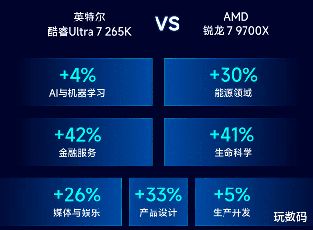 来到内容创作上,265K依旧是强势领先。首先是它支持的面更广,不管是视频、渲染还是建模,它都能够完美兼容;其次就是在SPEC Workstation测试中,它在“AI与机器学习”、“能源领域”、“金融服务”、“生命科学”、“媒体与娱乐”、“产品设计”、“生产开发”这7大领域都是全面领先于9700X,并且最大领先幅度甚至来到了42%。