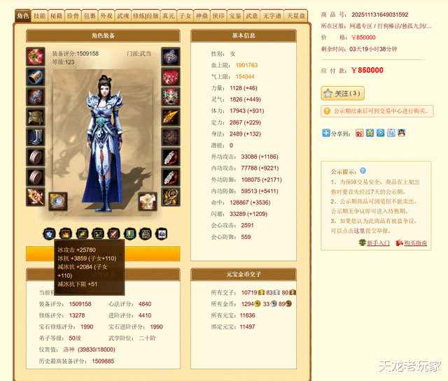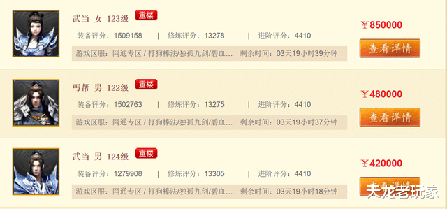 其中三个3进阶号,如今尚存的3个百万号(2个三进阶,一个127万评分武当)也已经上架。