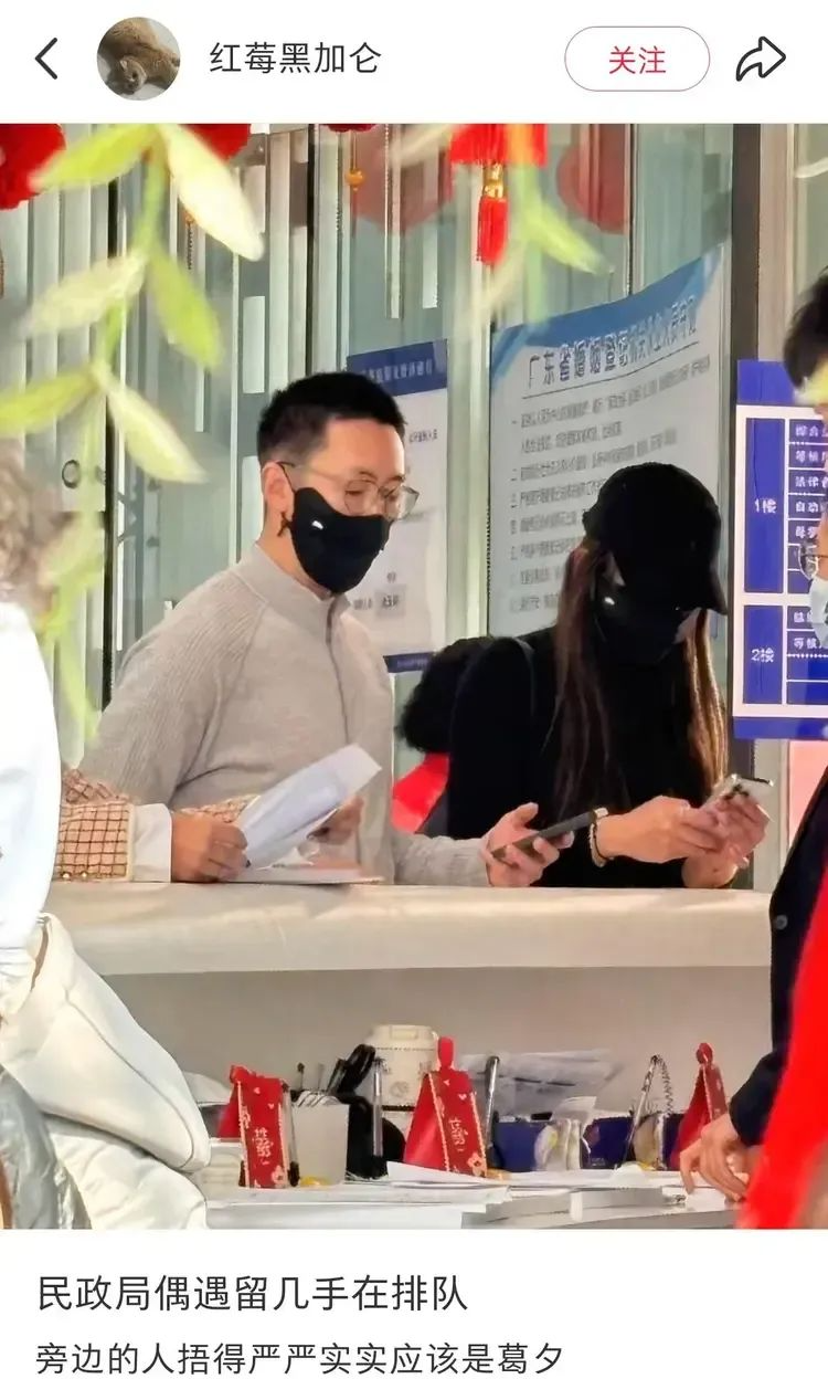 真的离了?网友在民政局看见了《再见爱人4》嘉宾葛夕与留几手,两位把自己包裹得严严实实,排队等待办理相关手续。记得前段时间留几手在直播中透露,他和葛夕的离婚已提前预约。所以这次被拍是冷静期结束后在办理离婚手续吗?两位好聚好散,各自安好吧!