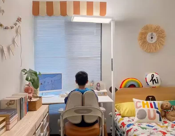 ③麦多尔Minddoumax采用光栅盾技术,通过扩大遮光角,提升遮光效率,解决高位照明光照直射容易产生眩光的难题,提升光照的柔和度,提升孩子学习专注度。