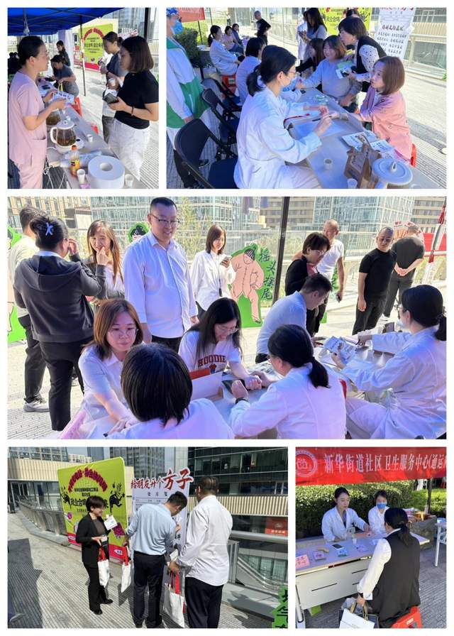 本次市集旨在打造企业志愿公益品牌服务,发挥社区及专业社会组织贴近居民、整合资源的优势,带领企业开展公益为民服务,同时为企业提供品牌展示、社会责任实践平台,形成“公益赋能商业、商业反哺社区” 的良性经济生态,实现 “企业成长、社区繁荣、居民幸福”的三方共赢。市集同步开启两大特色专场活动,为辖区居民与企业员工带来多重惊喜。在“午间充电站・养生快闪局”中医午市活动现场,潞河医院与新华街道社区卫生服务中心的5名专业医生亲临坐阵,带来全方位的健康服务。社区精心准备的养生时间转盘成为热门打卡点,大家通过趣味游戏轻松掌握日常养生知识,医生们还现场示范教学实用锻炼动作,让健康养生融入生活点滴。