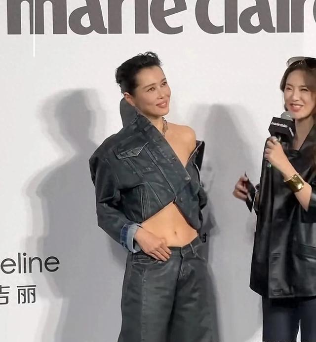 12月16日,嘉人红毯上,48岁的影后余男,身穿露肩露腰的奇特设计牛仔服登场,一出场就引得现场的媒体们一片惊呼,主持人更是连连惊叹余男的打扮太时尚,太美了!