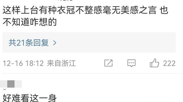 不过网友们却欣赏不来余男的这身穿搭,有的网友觉得余男这样穿衣服,属于衣冠不整,毫无美感可言,也不知道这种穿法表达的意思是什么。