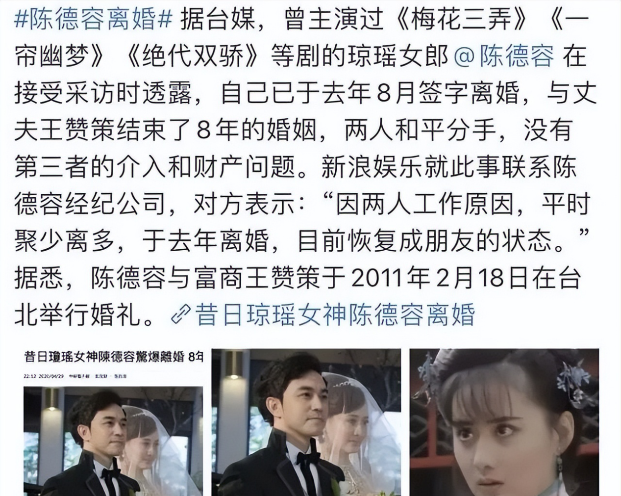 婚后的陈德容并没有放弃自己的事业,她选择自己喜欢的工作,享受生活。她也得到了丈夫的支持,坚持丁克,享受二人世界。然而,这段婚姻却没能走到最后。八年后,陈德容宣布离婚,原因是聚少离多。当然,外界也纷纷猜测,丁克或许是导致他们离婚的导火索之一。毕竟,对于王赞策这样的富豪家族而言,传宗接代是头等大事。