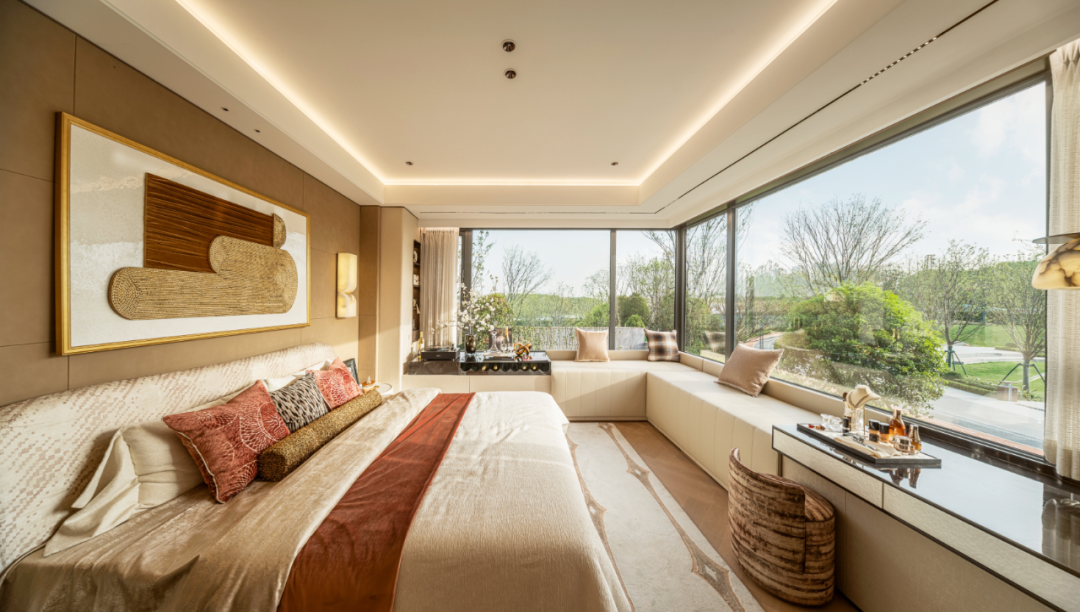 为最大化景观视野,Y9# 楼栋采用创新设计,将主卧270°飘窗的观景面大幅拓展。业主躺卧榻榻米上即可欣赏公园晨雾弥漫、四季更替的自然动态长卷。南向四开间设计让客厅、主卧、次卧乃至厨房皆拥公园视野,真正实现"房间即景框,生活即观景"。这种将自然深度植入日常的居住体验,正是当下改善市场中最稀缺的"视觉奢侈品"。