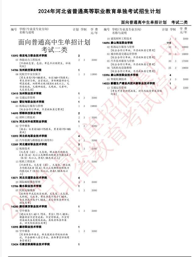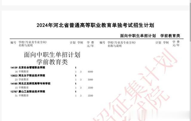24年对口征集计划