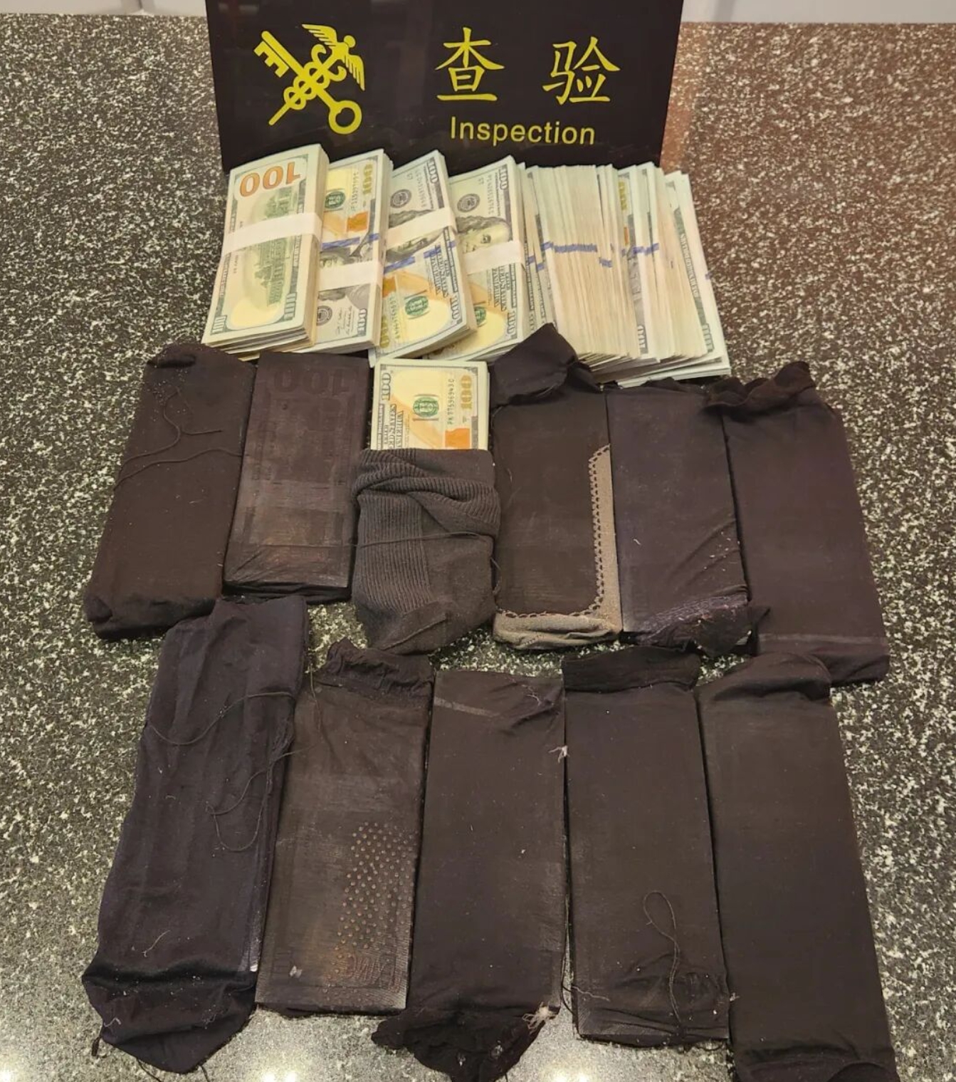 某日,长春龙嘉机场海关在对出境航班行李物品监管过程中,查获1名旅客将装满现金的袜子缝制在外套内侧走私美元现金,经现场关员清点,共计16.7万美元,折合人民币120.04万元。