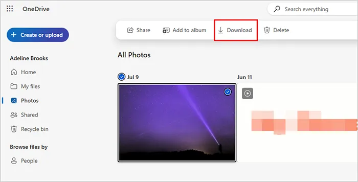 您将看到您的照片。现在,选择并下载照片到您的电脑上。