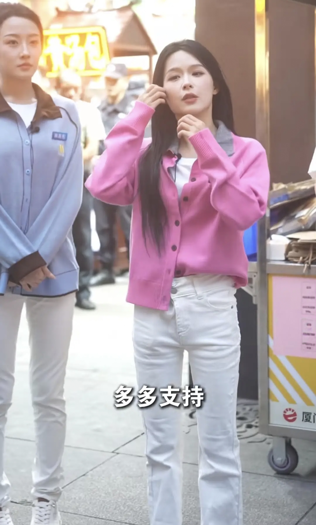 采访镜头,假睫毛比内容抢眼,一开口嘴唇七歪八斜,面目表情管理极不合格。