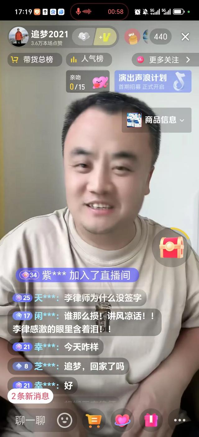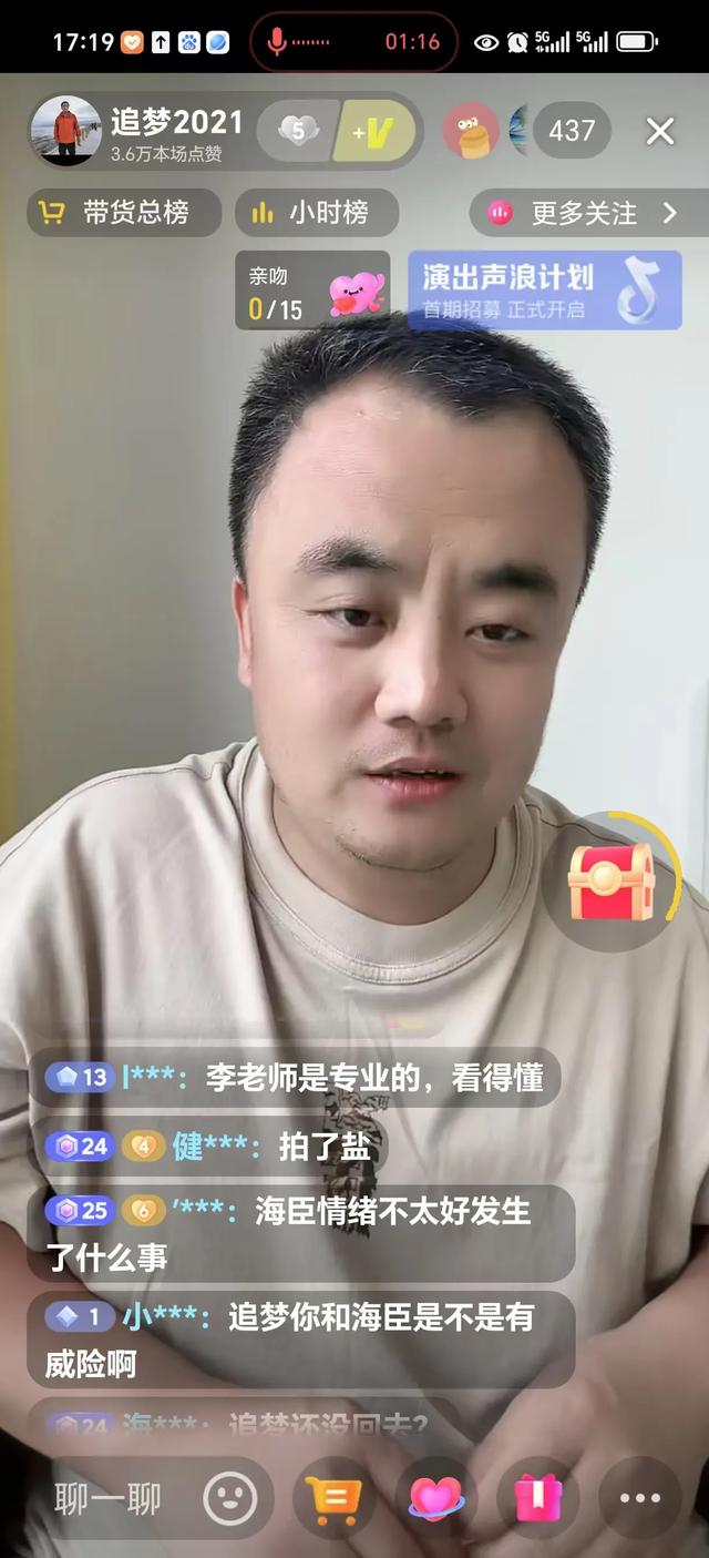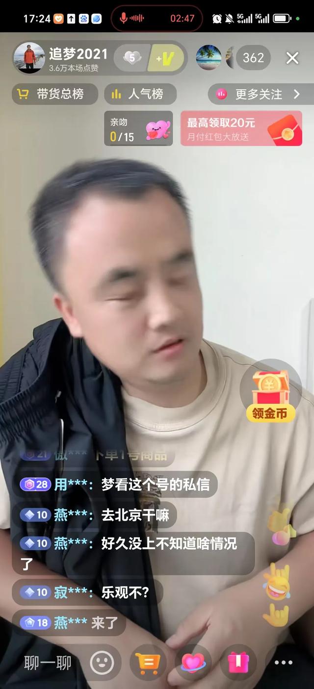 今晚支持许妈的主播追梦在京北直播时,屏幕上打出“你去京北干啥?”