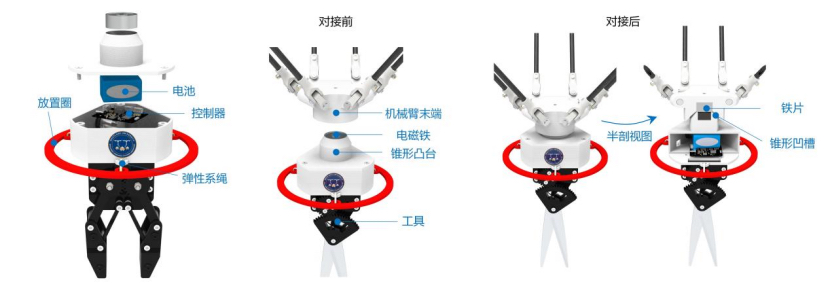 图丨机械臂与末端工具的对接过程(来源:Nature)