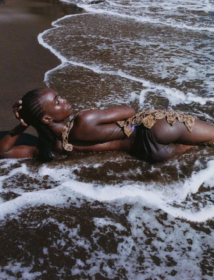 谁再说 “奢牌海边封 = 景与装的割裂堆衬”?看 Maty Fall 这波 Vogue Germany 开年封 ——Gucci 的彩纹服饰顺着她的肩峰锐棱铺展,把 “奢牌的雅” 裹成 “骨相里的野”;海边的浪廓衬着她的轮廓张力,让 “海的荒” 衬着 “魂里的奢”;连掌心沙粒的细节都像 “骨相野的外延”,不是 “穿 Gucci 拍海景”,是她的力量感骨相,接住了 Gucci 的奢与海的野,把 “CELEBRATION” 主题从 “概念噱头” 拽成 “骨相、奢装与海野共振的呼吸感”。