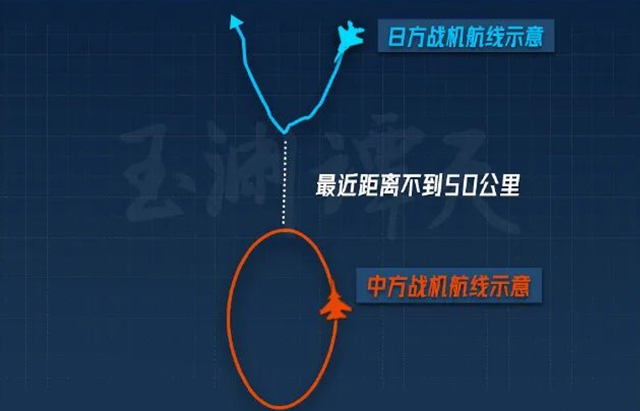 (日本战斗机对中方正常军事活动抵近干扰示意图)