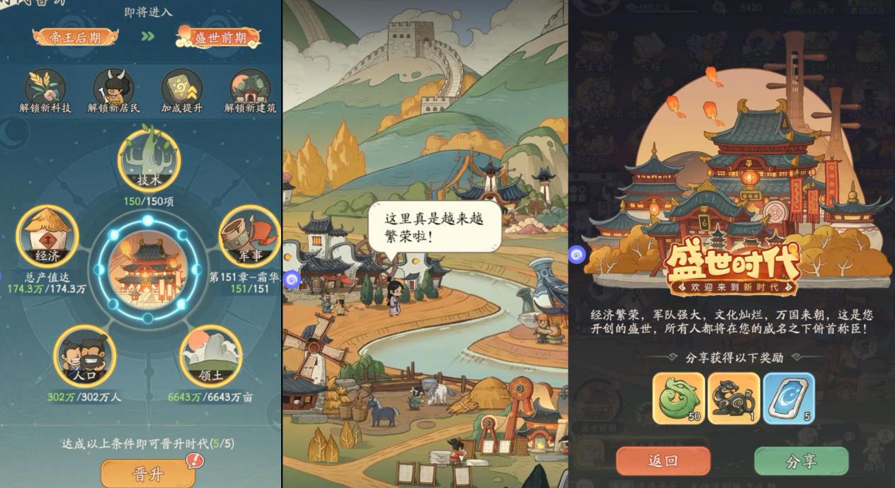 游戏玩法跟着历史时代的发展而发展,随着历史进站,人类文明从最原始的刀耕火种,到青铜器,再到盛世大唐,最后会发展到科技爆发的原子时代,每一步,都能看到人类历史是如何演进的。