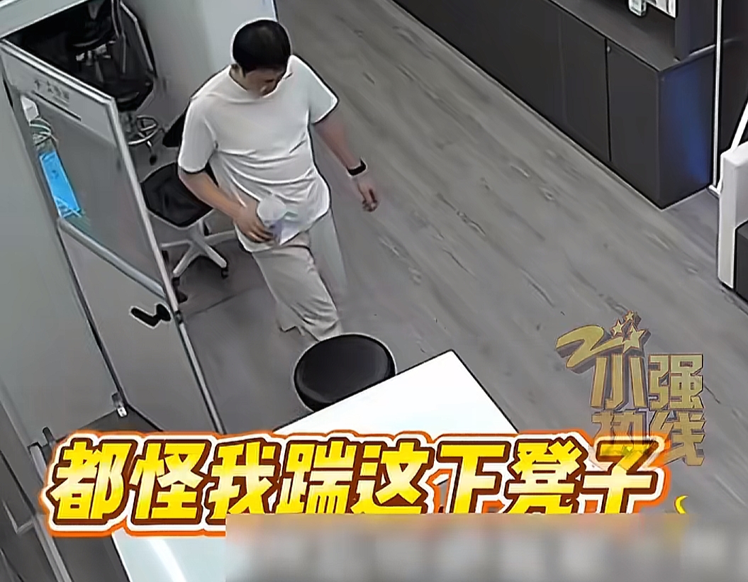 黑衣男子根本没意识到自己做错了,反而还说是石先生先踢凳子吓到他了,他才这样做的。