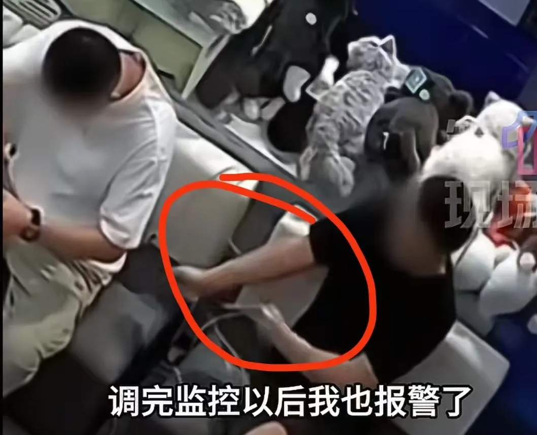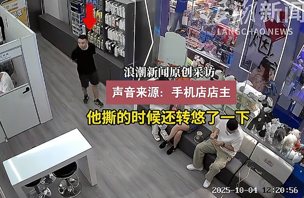 让人气愤的是,那位黑衣男子在扯线之前还故意在店里转悠了一圈。