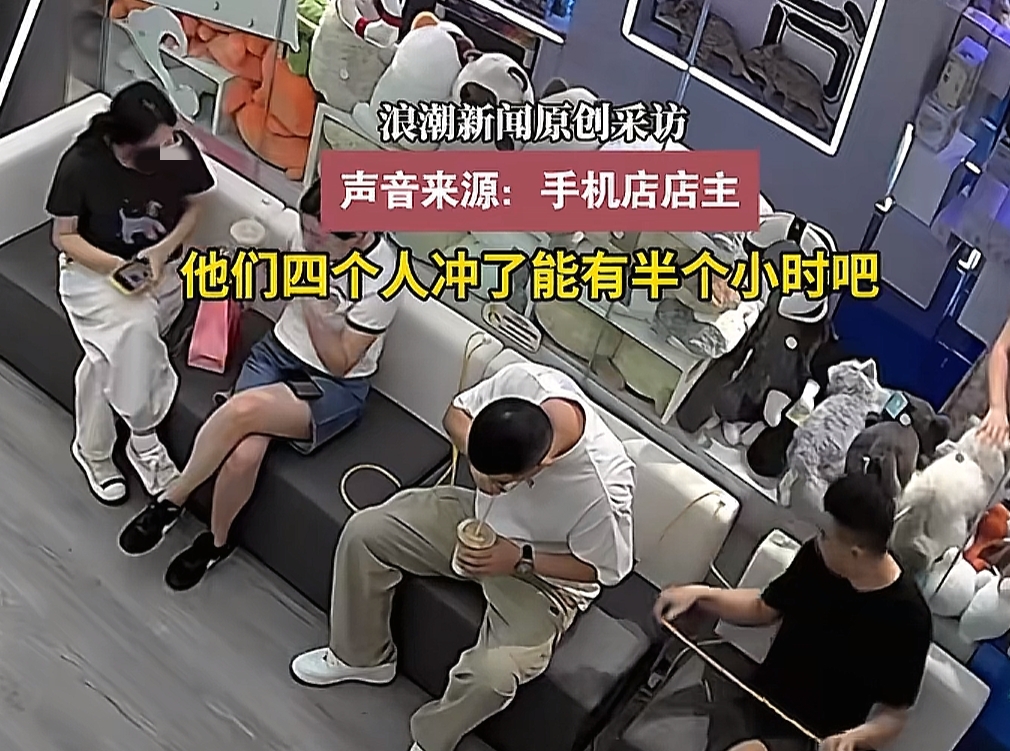 10月4日,有四人来到了山东烟台的一手机店里,没跟老板打招呼就直接坐在店里的沙发上充电。