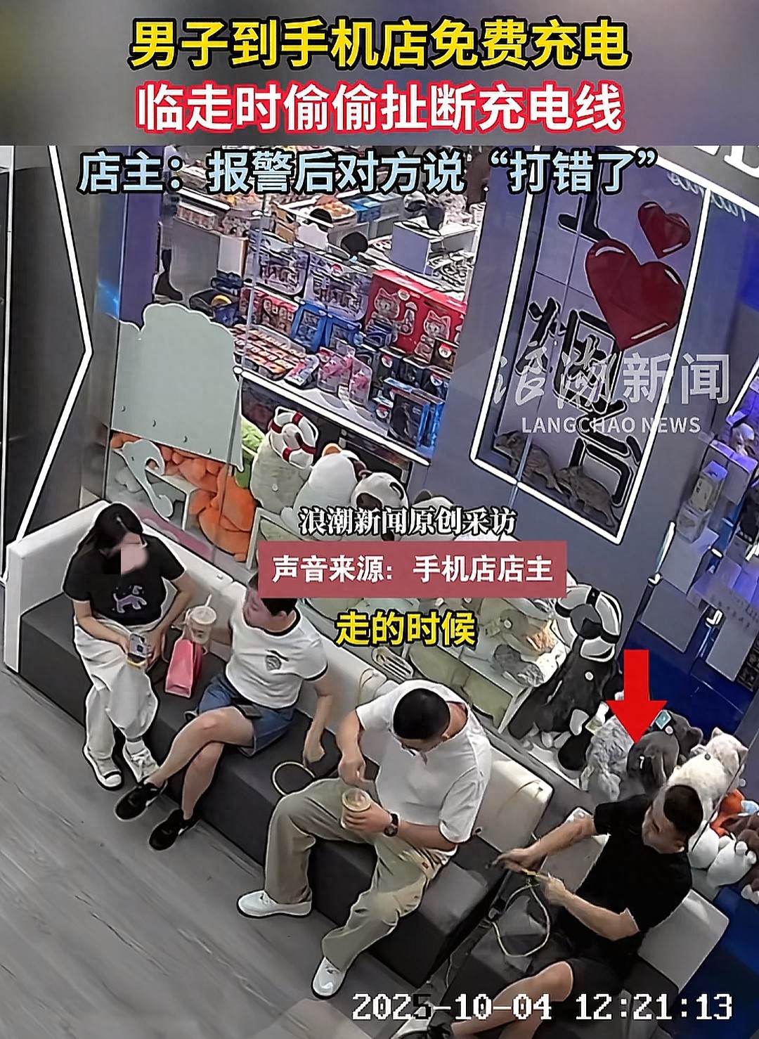 大概半小时后,这四人就离开了,可店家石先生却发现几根供人充电的线被人扯断了。