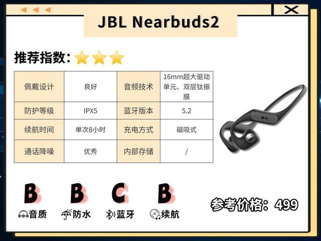 综合来看,JBL Nearbuds2代耳机在佩戴舒适性、音质表现以及使用体验上表现突出。凭借其轻量化设计和开放式体验,是许多运动爱好者的理想选择。