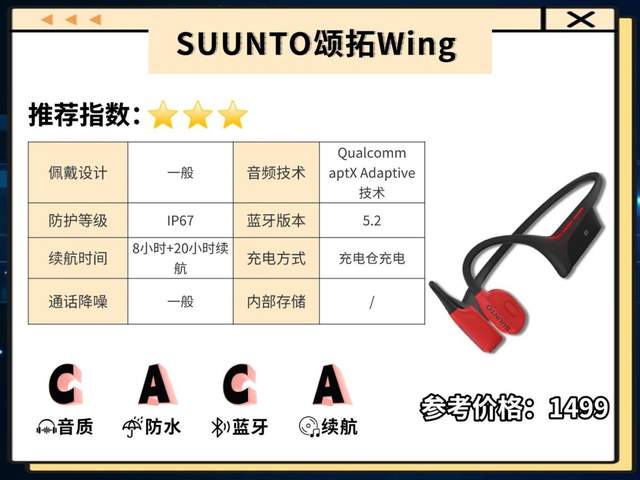 SUUNTO颂拓Wing是一款专为户外运动设计的骨传导耳机,具有抗风噪、长续航和开放式不入耳的设计,特别适合骑行和跑步等活动。