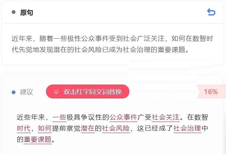 把查重报告中标红的内容,用DeepL、Papago等这样的翻译软件先翻译成小语种,然后再翻译回中文。经过翻译后的文本,其表达方式通常都会发生变化,从而降低AI率和重复率,但需要注意的是,翻译后的文本需保持原意。